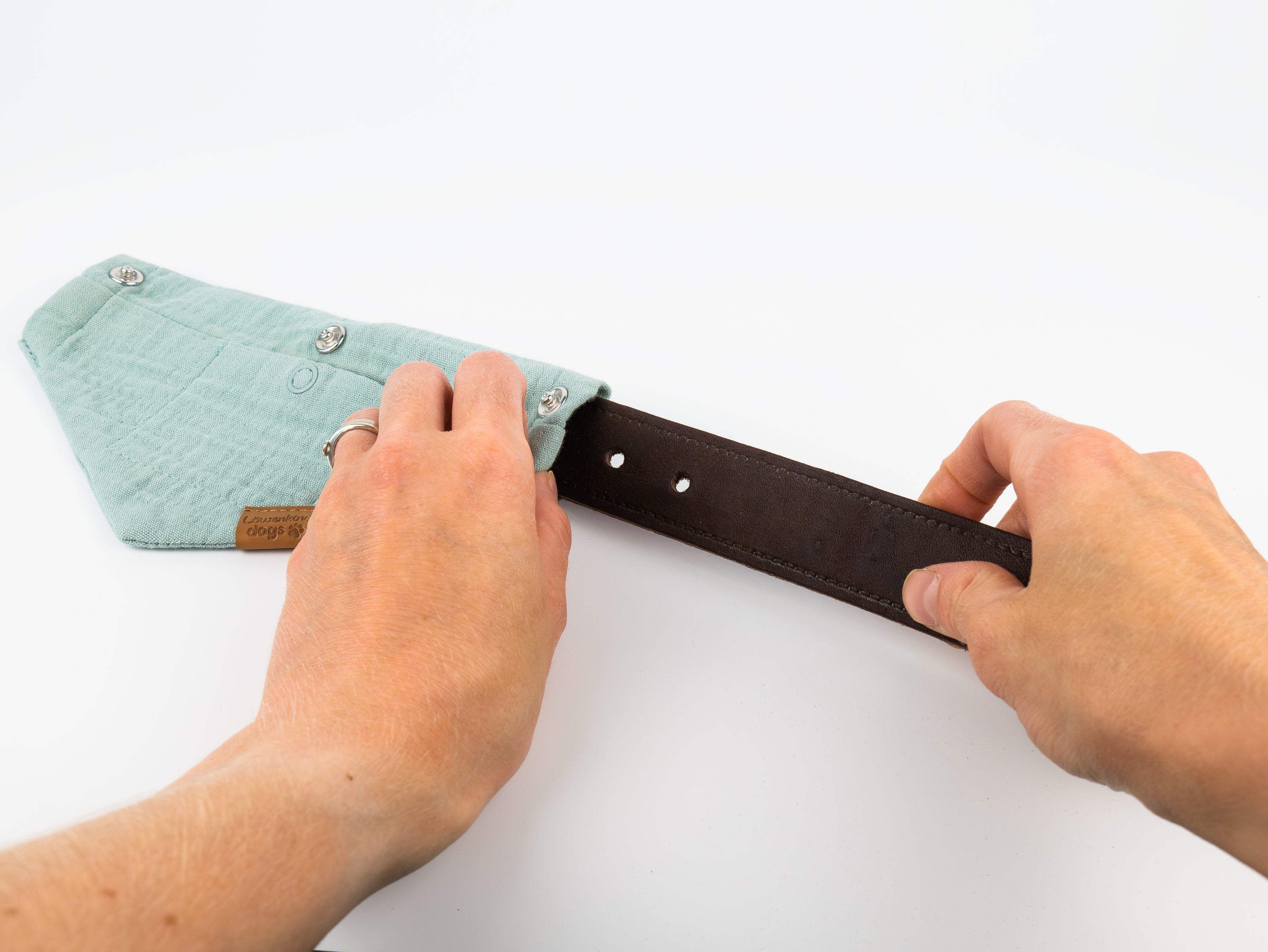 Das SniffTag (Hundehalstuch mit Padtasche) ist ca. 19 x 11 cm breit. Es ist für alle Halsbänder bis 5cm Breite geeignet.